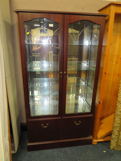 A MODERN GLAZED DISPLAY CABINET WITH ETCHED GLASS - W 90 CM