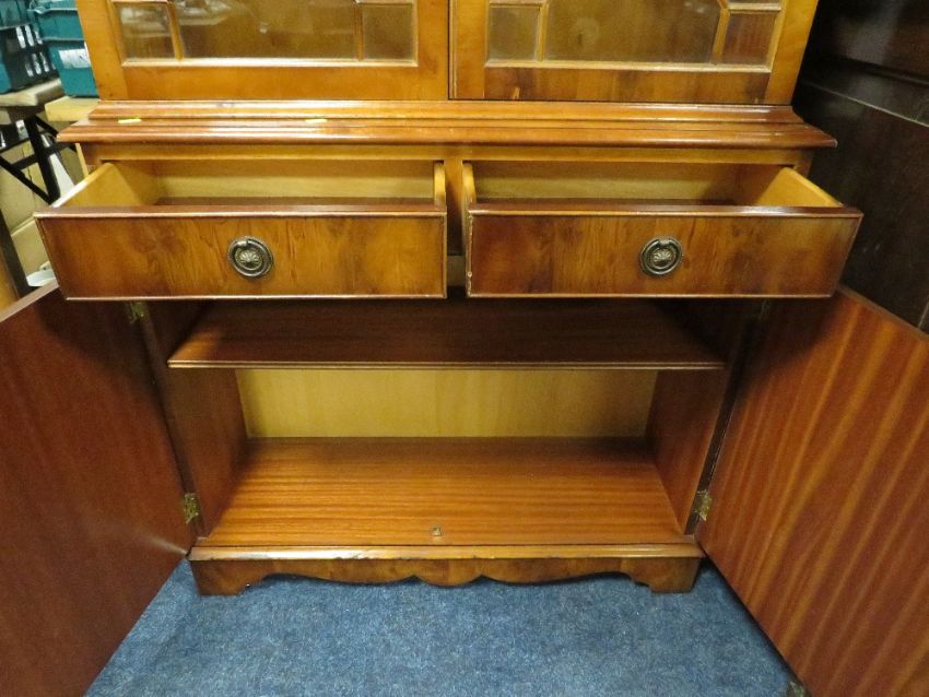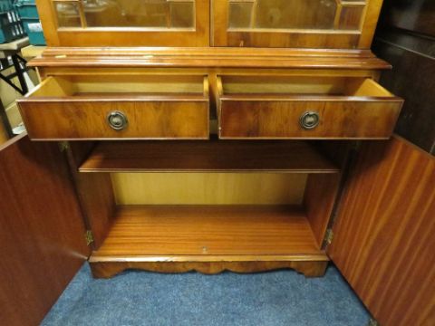 AN EDWARDIAN MAHOGANY CARVED SIDEBOARD WITH TWO DRAWERS H-89 W-116 CM