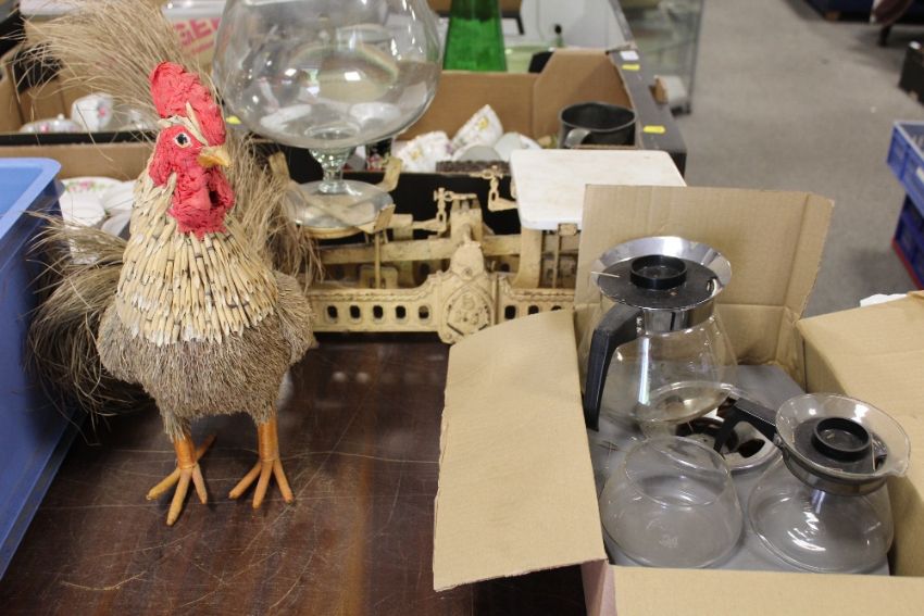 A TRAY OF SUNDRIES TO INCLUDE VINTAGE SCALES