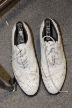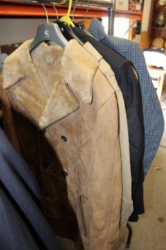 A LARGE QUANTITY OF GENTS CLOTHING TO INCLUDE SUITS, OVERCOAT, GOLF SHOES AND TIES