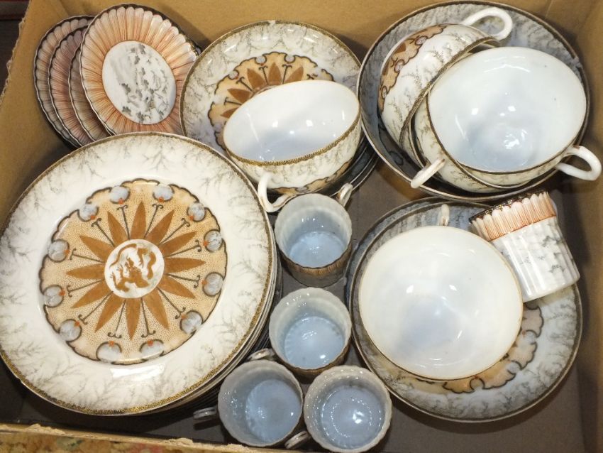 A SMALL TRAY OF ORIENTAL EGGSHELL TEA AND COFFEE WARE