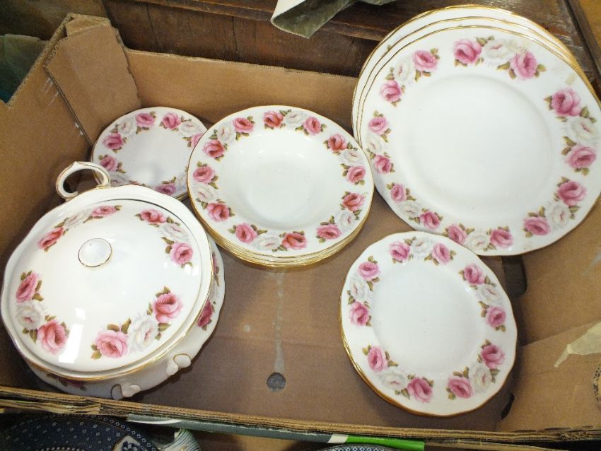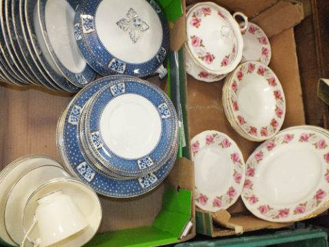 TWO TRAYS OF ASSORTED CHINA TO INCLUDE QUEEN ANNE PRINCESS ROSES, ROYAL DOULTON ETC
