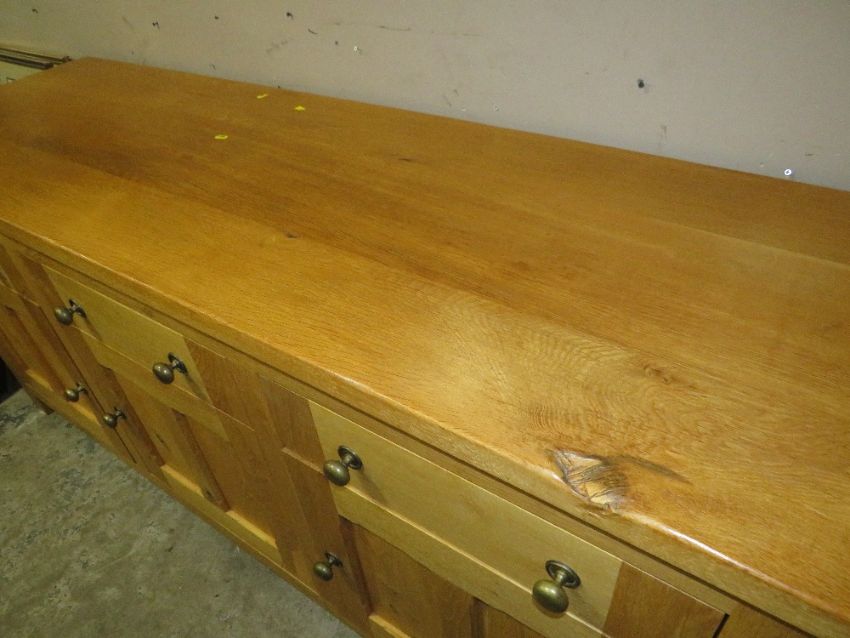 A LARGE OAK DRESSER WITH THREE DRAWERS ABOVE CUPBOARDS, H 89 CM, W 198 CM, D 63 CM