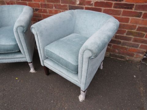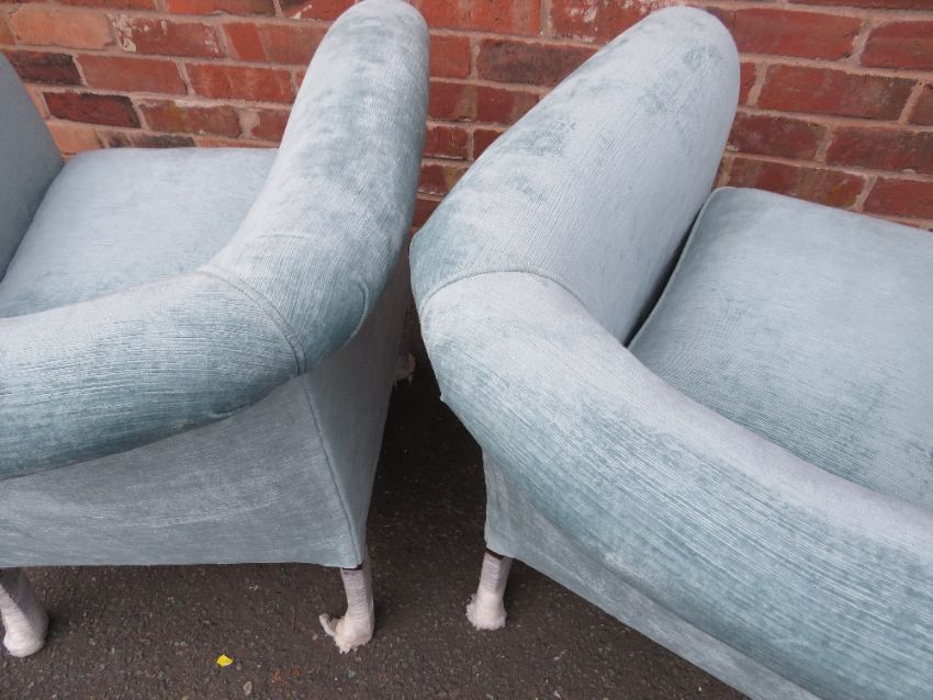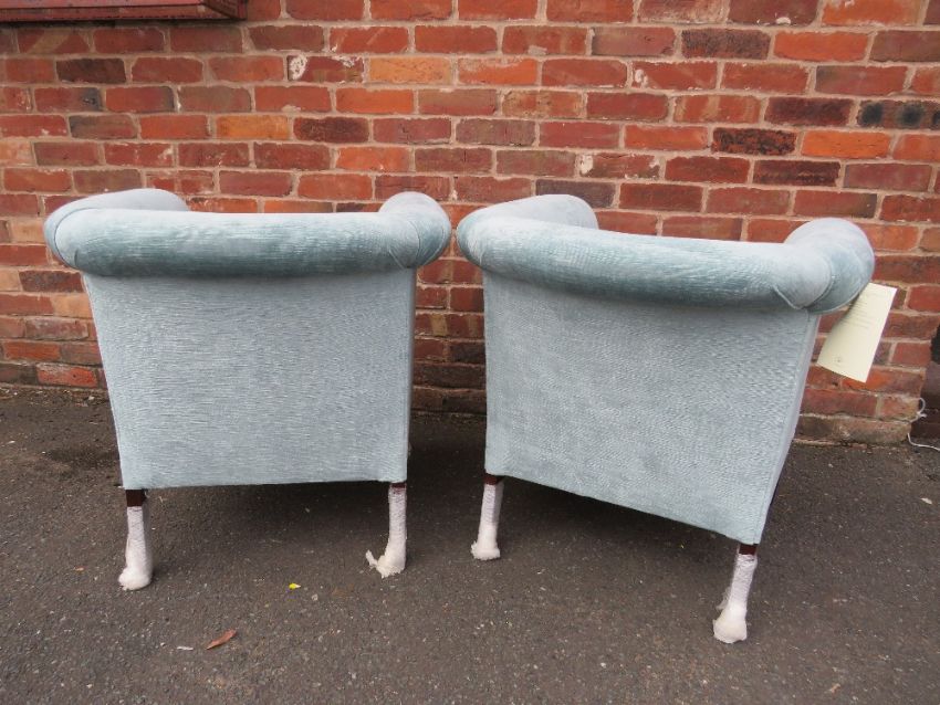 A PAIR OF LAURA ASHLEY TEAL UPHOLSTERED CHAIRS, AS NEW