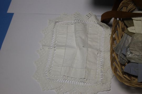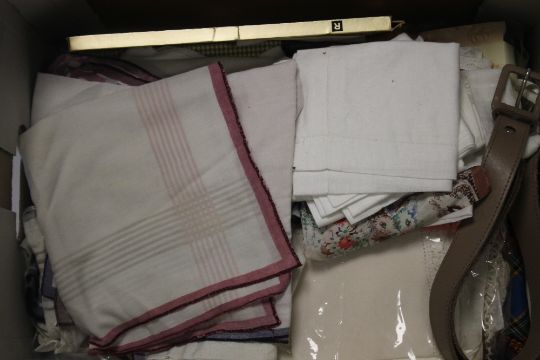 A BOX OF VINTAGE COLLARS, HANDKERCHIEFS, ETC.