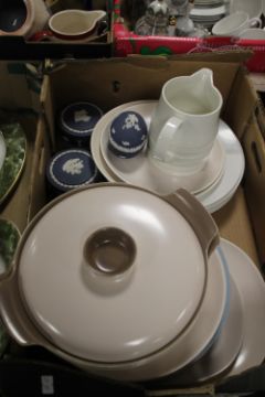 TWO TRAYS OF ASSORTED CERAMICS, TO INCLUDE WEDGWOOD JASPERWARE ETC (TRAYS NOT INCLUDED)