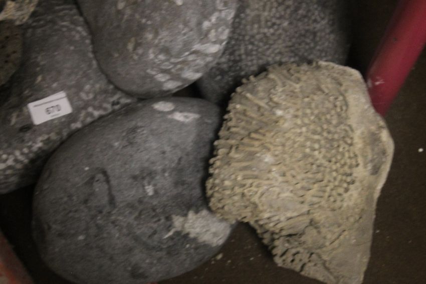 A COLLECTION OF FOSSILS MAINLY IN LARGE BOLDER FORM, to include a coprolite (fossilized poo)