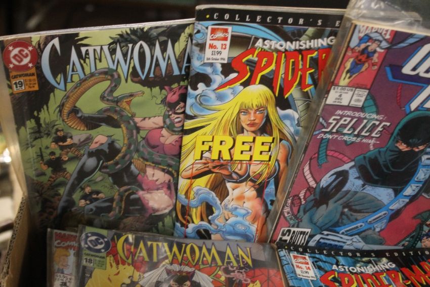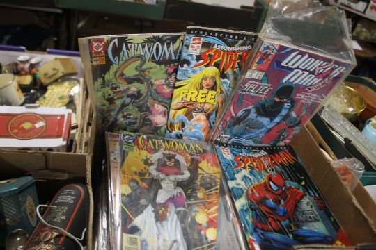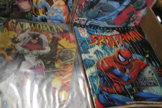 A BOX OF COMICS, TO INCLUDE SPIDERMAN, CATWOMAN, WONDER WOMAN, ETC. (Approx. 107)