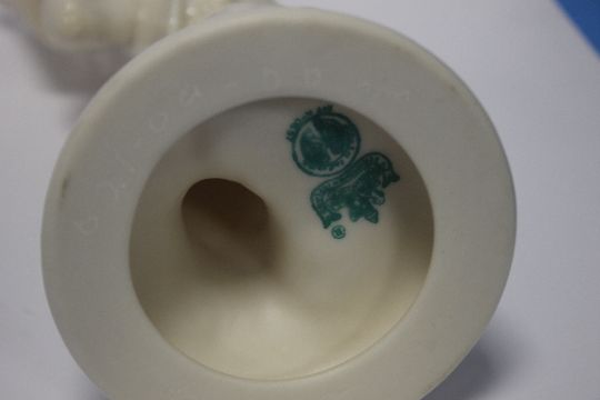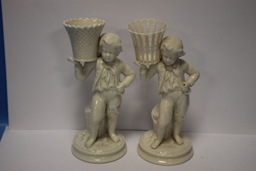TWO BELLEEK FIGURES WITH GREEN MARKS TO BASE Condition Report:  There are no obvious visual signs of damage or restoration