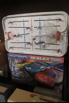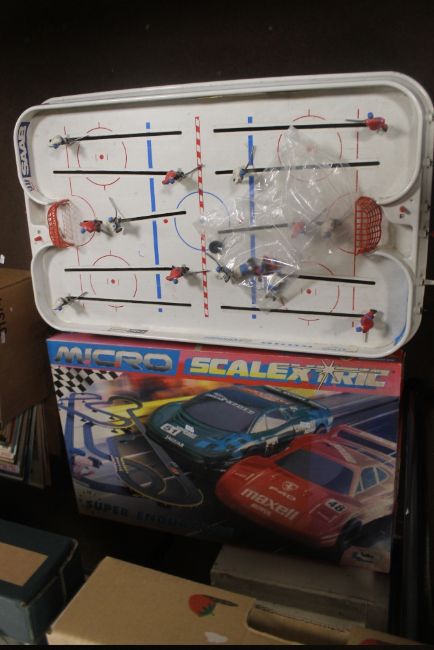 A TABLE TOP ICE HOCKEY GAME TOGETHER WITH A BOXED MICRO SUPER ENDURANCE SCALEXTRIC