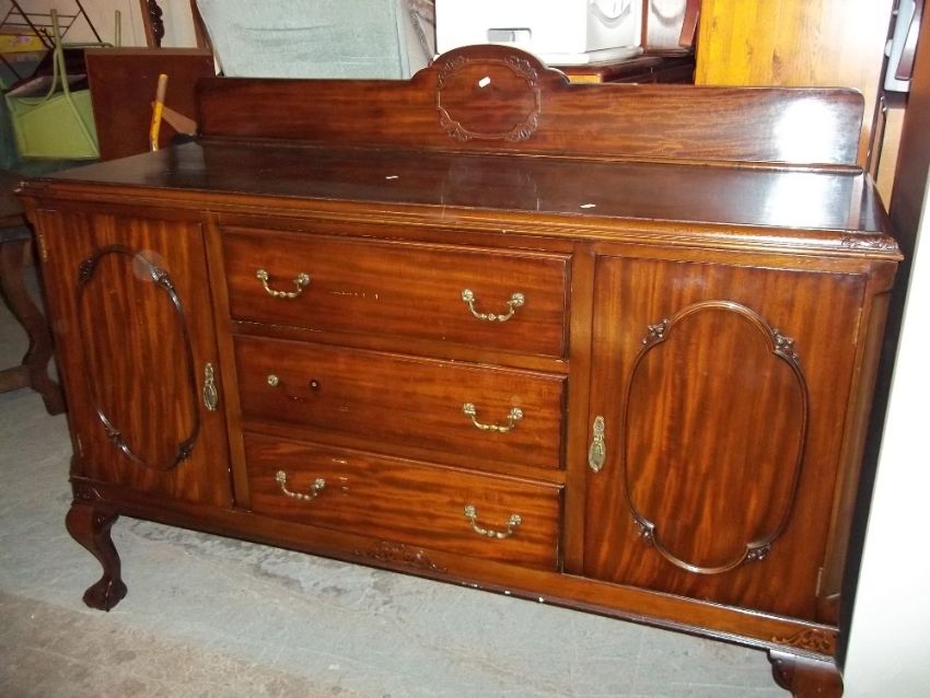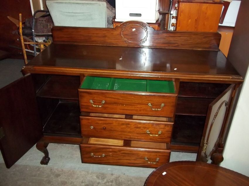 A VINTAGE SIDEBOARD AND A RETRO OVAL COFFEE TABLE