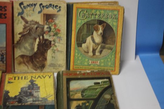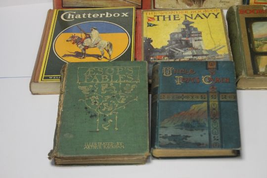 A SMALL COLLECTION OF CHILDREN'S BOOKS to include two volumes of 'Chatterbox', 'Sunny Stories' published by Raphael Tuck, Arthur Rackham - 'Aesop's Fables', William Heinemann 1912 A/F, Harriet Beecher Stowe - 'Uncle Tom's Cabin' Gall & Inglis c. 1890 etc. (10)