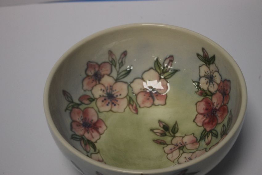 A MOORCROFT BOWL, 'SPRING BLOSSOM' - 16 cm DIAMETER - SIGNED WM