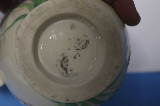 A BELLEEK TEAPOT, A BELLEEK JUG BOTH WITH BLACK MARKS TO BASE AND A TEAPOT STAND, NO MARK Condition Report: There is a small chip to the underside of the spout on the teapot and slight rubbing to the gilding.  The stand has no obvious damage or restoration. The jug has slight rubbing to the gilding and a possible hairline crack to the inside.