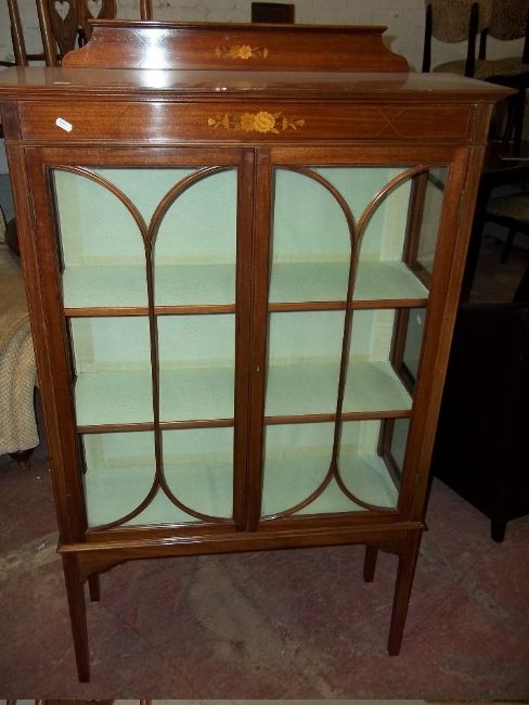 AN ANTIQUE EDWARDIAN INLAID DISPLAY CABINET