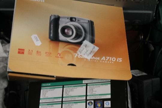 TWO TRAYS OF SUNDRIES AND ELECTRICAL'S, TO INCLUDE CAMERAS AND LAMP ETC (TRAYS NOT INCLUDED)