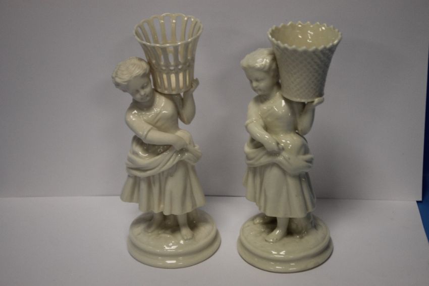 TWO BELLEEK FIGURES WITH GREEN MARKS TO BASE Condition Report:  There are no obvious visual signs of damage or restoration