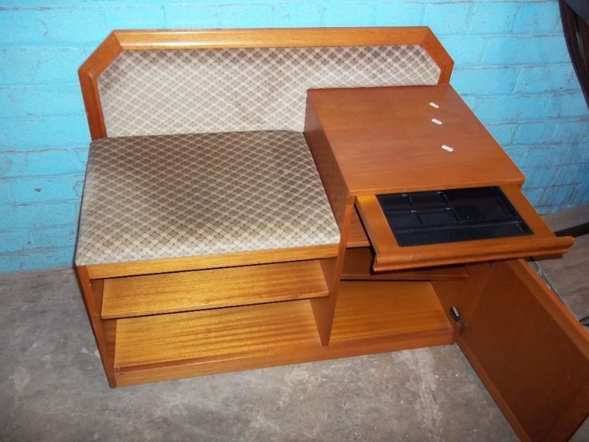 A RETRO TEAK TELEPHONE MEDIA SEAT