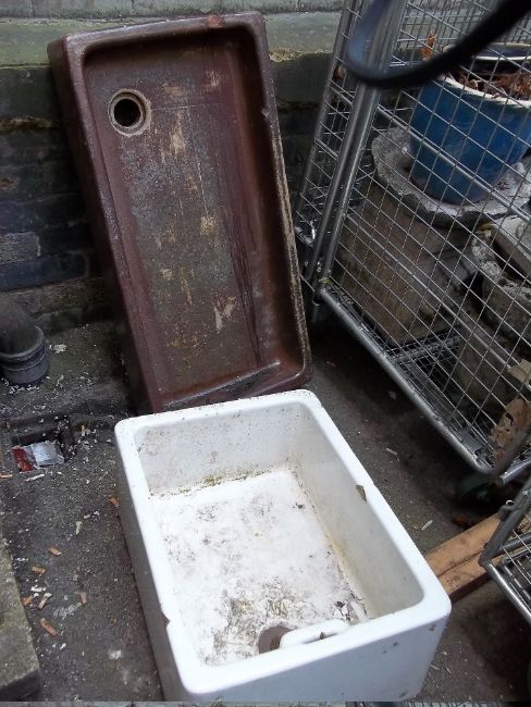 TWO SINKS - ONE ROYAL DOULTON BELFAST SINK AND ONE ANTIQUE BUTLERS SINK
