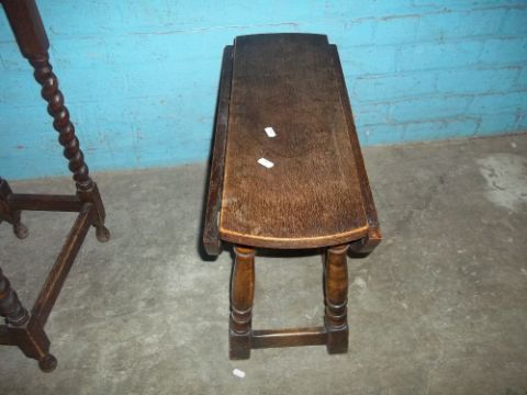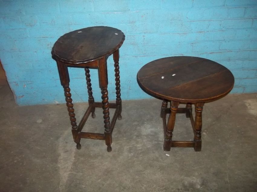 THREE OAK ANTIQUE TABLES, ONE DROP LEAF, ONE TILT TOP