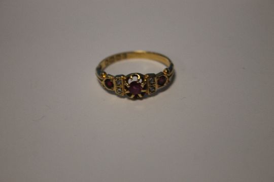 AN 18 CT GOLD LADIES RUBY AND DIAMOND ? RING APPROX 2.4 GRAM