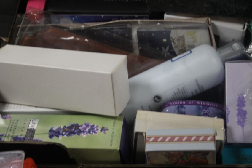 A TRAY OF GIFT SETS, COSMETICS ETC (TRAY NOT INCLUDED)