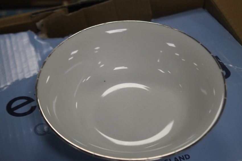 A BOX OF CERAMICS TO INCLUDE ROYAL WORCESTER PLATINUM