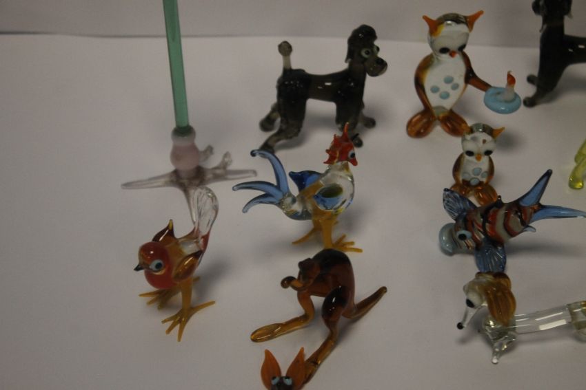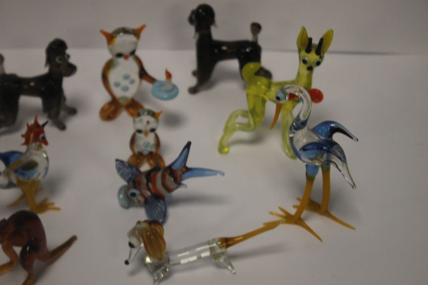COLLECTION OF MURANO STYLE GLASS ANIMALS, TOGETHER WITH WADE WHIMSIES