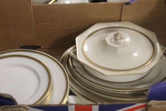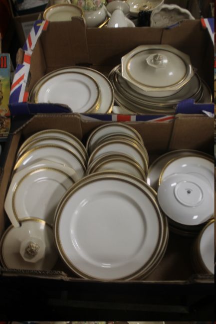 TWO TRAYS OF ASSORTED TEA AND DINNERWARE