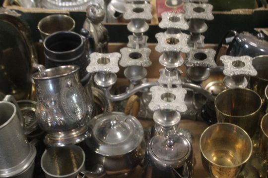 TWO TRAYS OF METALWARE TO INCLUDE GOBLETS (TRAYS NOT INCLUDED)