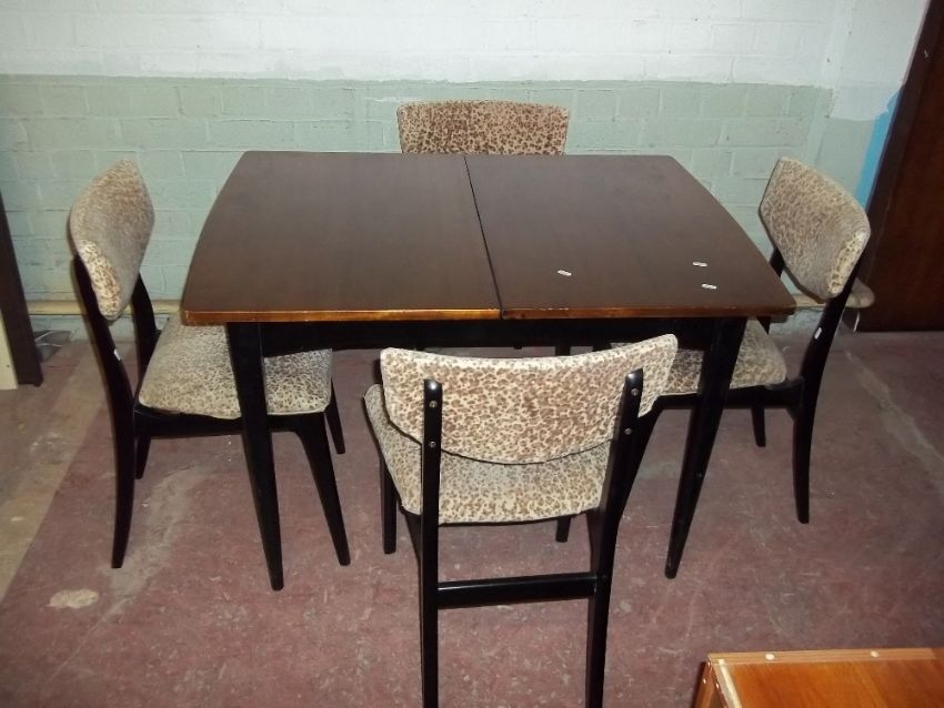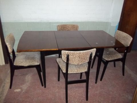 AN EXTENDING SAPPELE DINING TABLE AND FOUR CHAIRS