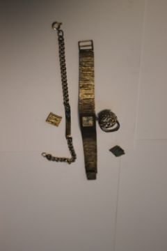 A VINTAGE HALLMARKED SILVER LADIES "SWISS EMPRESS" BRACELET WRIST WATCH, and spare links, along with a silver ring and an identity bracelet,