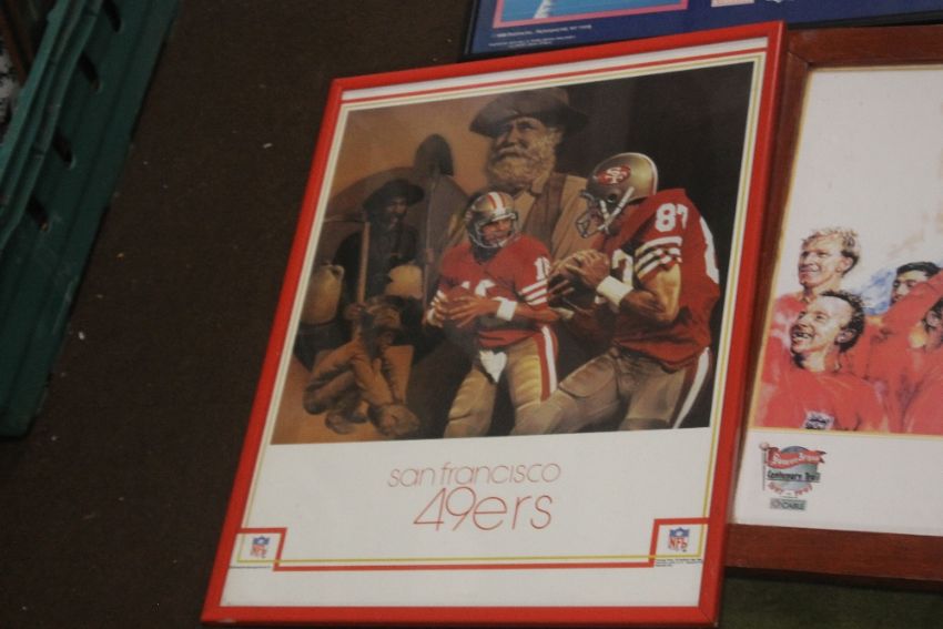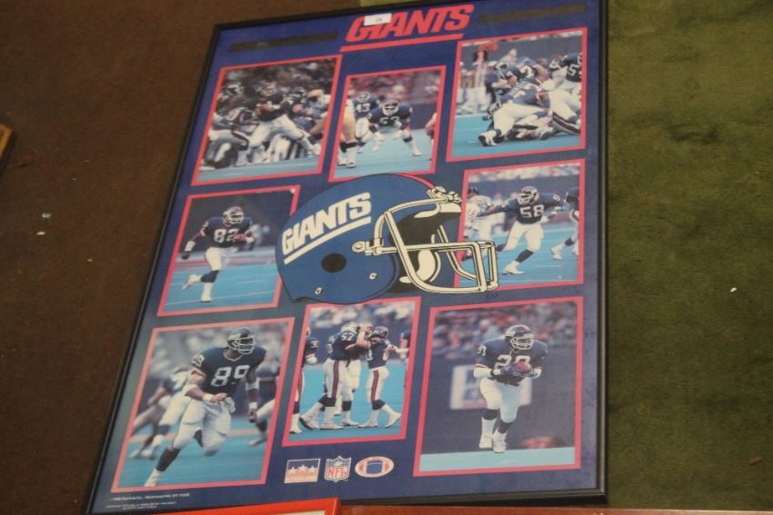NEW YORK GIANTS AMERICAN FOOTBALL POSTER, framed and glazed, 89 x 57.5 cm together with 'San Francisco 49ers' 52.5 x 42.5 cm  etc
