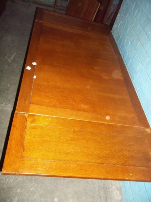 A VINTAGE OAK DRAW LEAF TABLE WITH PINEAPPLE STYLE LEGS