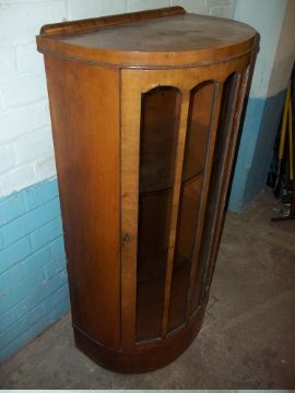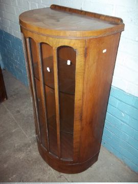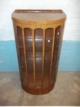 A BOWED WALNUT VINTAGE DISPLAY CABINET