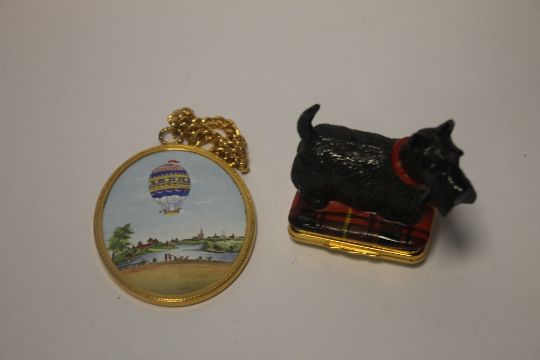 A HALCYON DAYS SCOTTISH TERRIER TRINKET BOX, AND A HALCYON DAYS PLAQUE