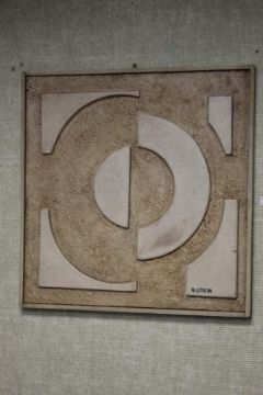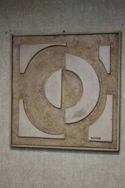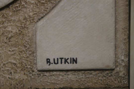 ABSTRACT MIXED MEDIA ON BOARD, SIGNED BOLESLAW UTKIN, 63 X 62 cm