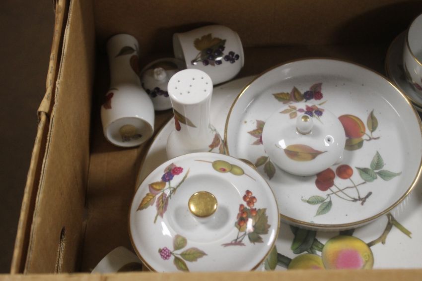 A TRAY OF ROYAL WORCESTER EVESHAM TEA AND DINNERWARE (TRAY NOT INCLUDED)
