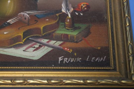 A SMALL GILT FRAMED STILL LIFE SIGNED FRANK LEAN 21 CM X 16 CM