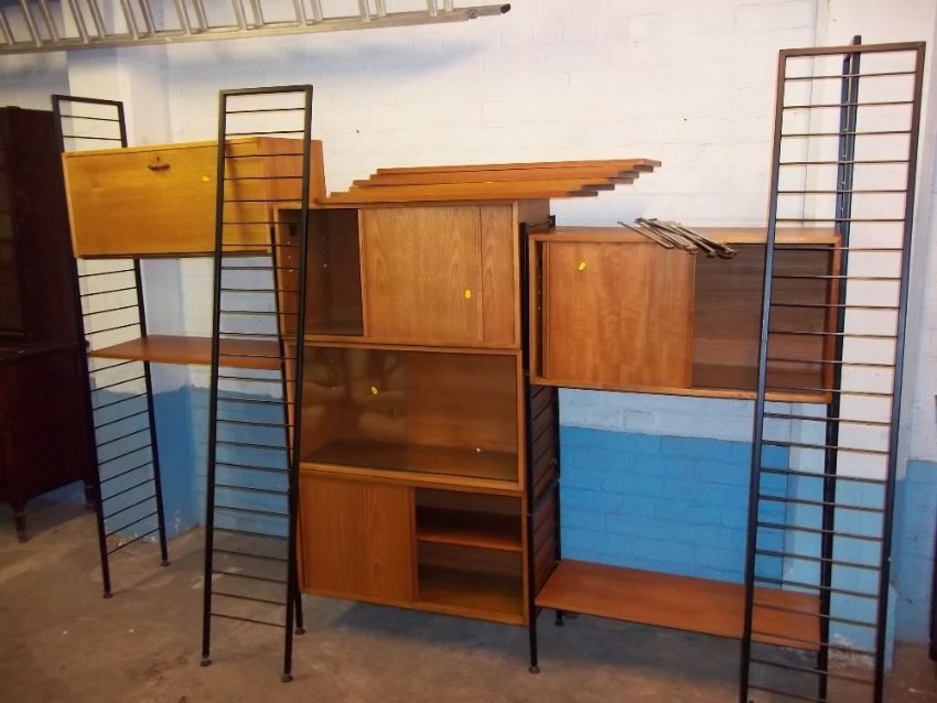 A RETRO TEAK LADDERAX BOOKCASE MODULAR UNIT WITH FOUR UPRIGHTS