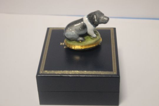 A BOXED HALCYON DAYS TRINKET BOX "THE BRITISH SADDLEBACK PIG"