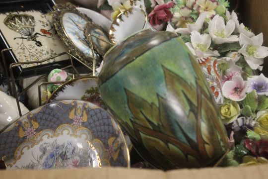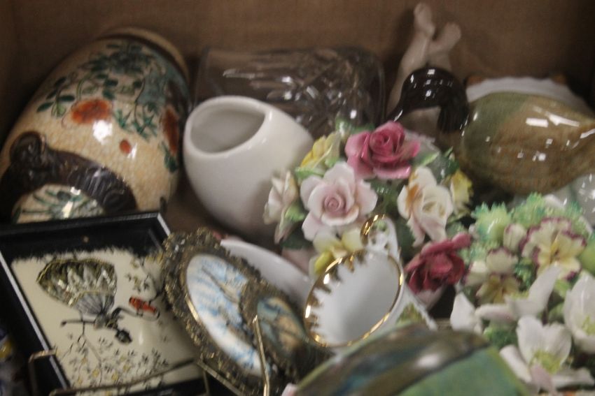 A TRAY OF CERAMICS TO INCLUDE POSIES (TRAY NOT INCLUDED)