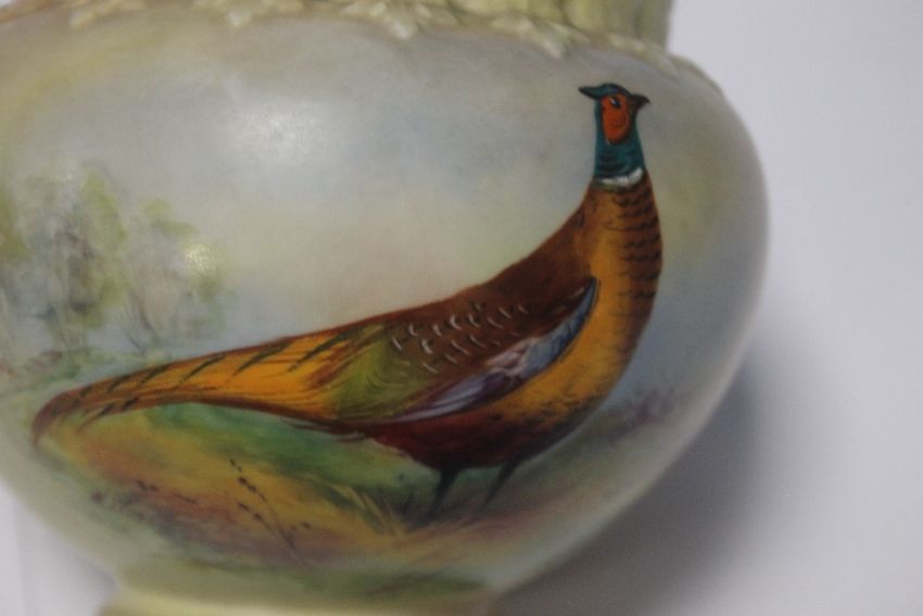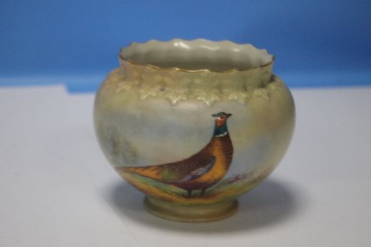 A LOCKE AND CO WORCESTER BOWL PAINTED WITH A PHEASANT SIGNED "W . STINTON"