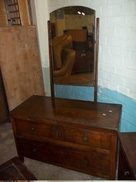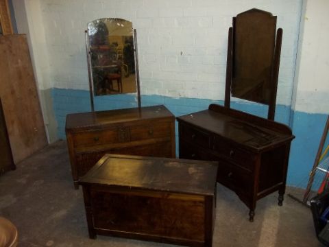 THREE ITEMS TO INCLUDE VINTAGE OAK DRESING TABLES AND A BLANKET CHEST