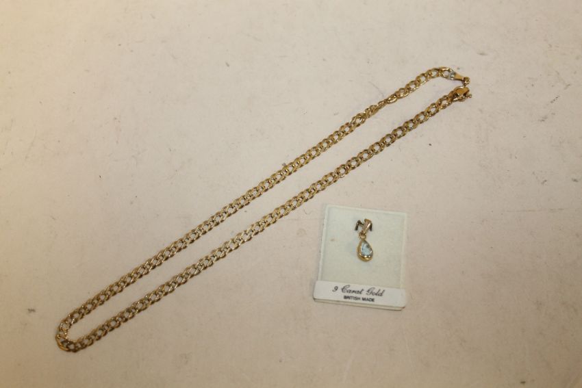 A SMALL 9 CT GOLD NECKLACE, APPROX WEIGHT 6 G, TOGETHER WITH A 9 CT GOLD SMALL PENDANT