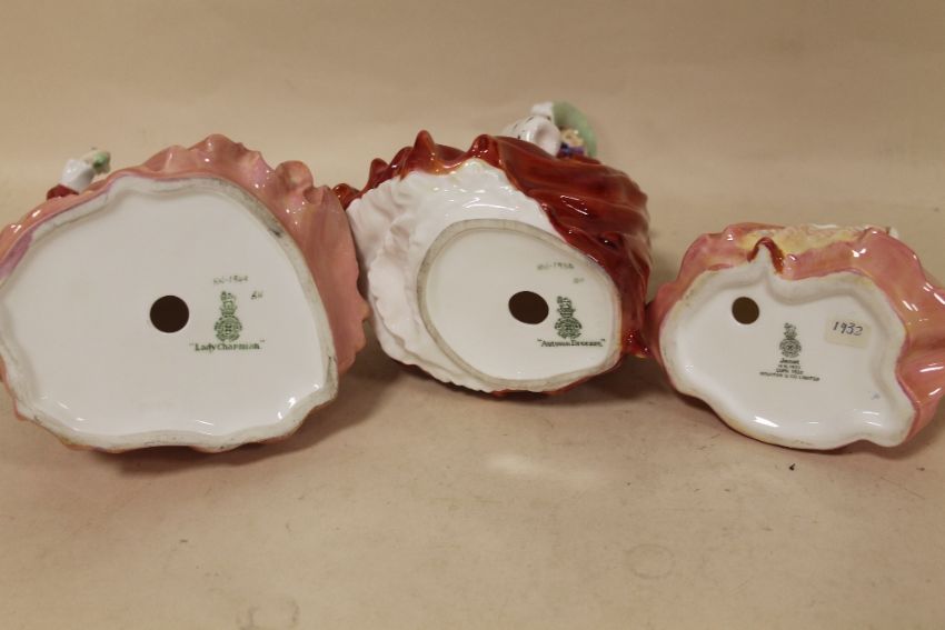 THREE ROYAL DOULTON FIGURINES CONSISTING OF LADY CHARMAINE HN1949, JANET HN1537 AND AUTUMN BREEZES HN1934