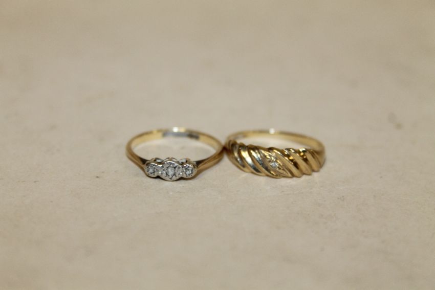 A HALLMARKED 9CT GOLD ILLUSION SET RING, APPROX WEIGHT 1.5 G, TOGETHER WITH ANOTHER APPROX WEIGHT 1.6 G (2)