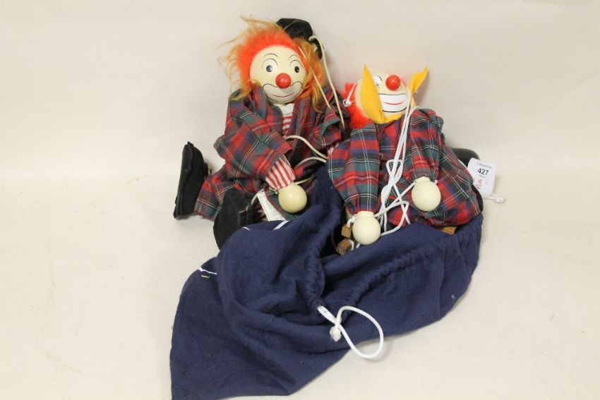 TWO WOODEN CLOWN PUPPETS