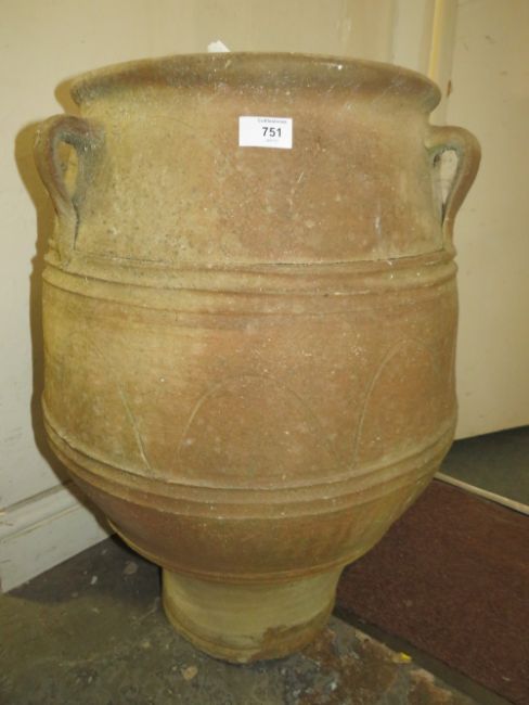 A CRETAN POTTERY AMPHORA /  URN WITH INCISED DETAIL H 66 CM