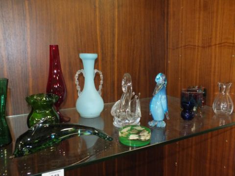 A LARGE COLLECTION OF STUDIO GLASS ETC. TO INCLUDE ANIMAL FIGURES AND A LUCITE PAPERWEIGHT